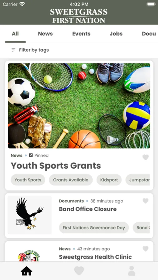 - View personalized feed supplied by the Band Office in a chronological order or by category: