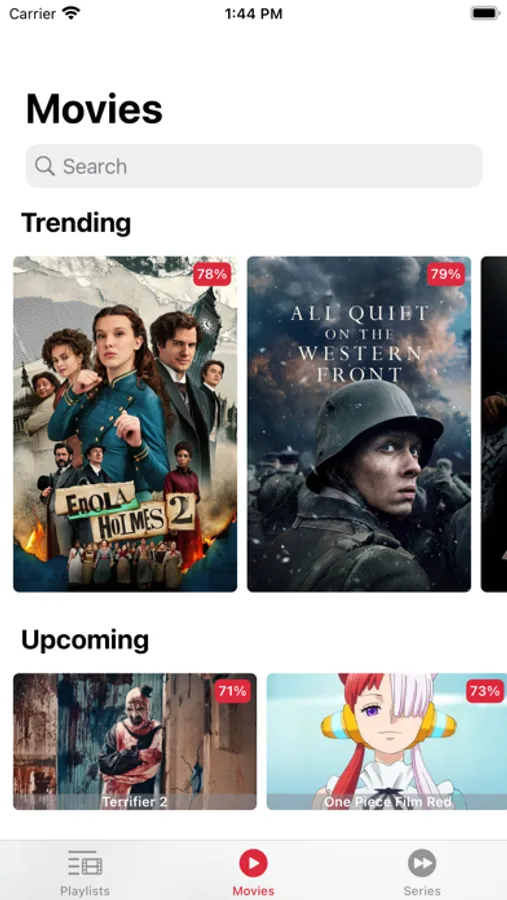 Based on the TMDB content, the app allows you to find trending content, informations about movies and series, cast's biography, and more.