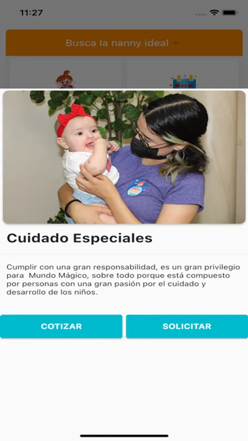 Mundo Mágico es una aplicación segura y confiable para tu familia, nos tomamos muy en serio la seguridad de todos, por lo cual contamos con un registro que nos permite identificar a las niñeras ideales y más preparadas para ti. Selecciona el servicio que necesites y llena el formulario para realizar la búsqueda de niñeras. Mundo mágico te mostrará todos los perfiles de usuarios disponibles para el cuidado de tus hijos, revisa los perfiles y elige a la niñera que consideres ideal para el cuidado de tus pequeños.