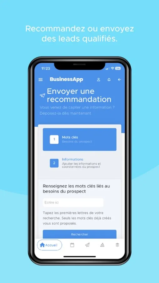 - Recevoir et/ou envoyer des recommandations / leads qualifiés (vous pouvez même fixer une rémunération pour l’apport d’affaires) - Organiser et/ou participer à des rencontres selon votre emploi du temps (réunion business, atelier pour progresser, visite d’entreprise…)