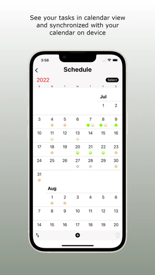1. Calendar to mark your tasks and synchronize the events with a calendar on your device.