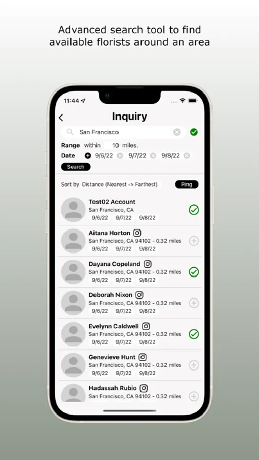 3. Finding local florists around an area on map, and send inquiry message to them.