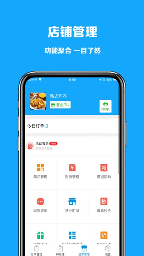 **门店管理** 餐厅信息随时设定,自由开关门店