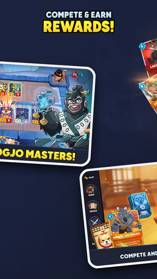 Engage in fast, action-packed battles and find creative ways to outplay your opponents. Challenge friends at any time or climb the competitive Shiba ranks and become a Dogjo Master!