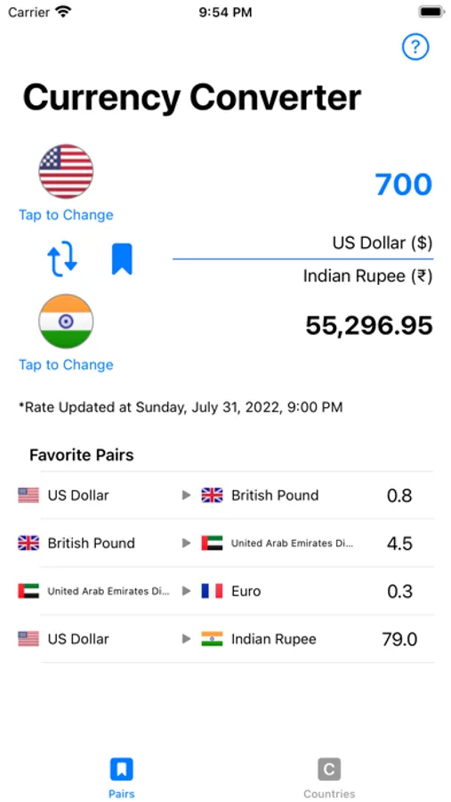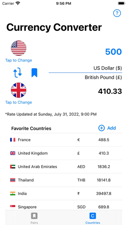 It is an intuitive app that allows users to save countries of their choosing and does not requires login or sign up.