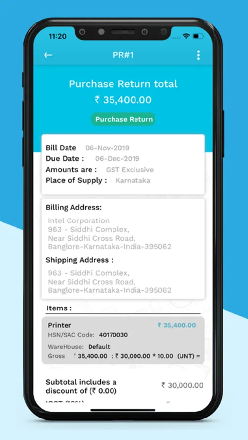 • GST Return: You can easily file all your GST returns with simple one click. We will automatically submit/upload them to the GST server.