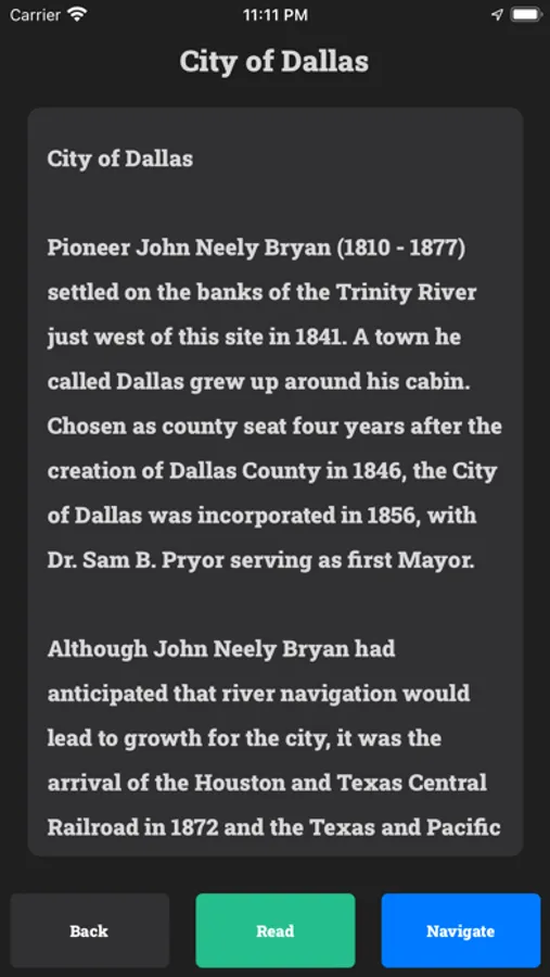 Texas Roadtrip is designed to enhance any trip through Texas by showing which landmarks are around your current location.Note: This app only works if you are within 50 miles of a Texas landmark, historical marker or other place of interest.Texas Roadtrip is completely free meaning it has no tracking and no ads. It runs completely offline in most cases so you can find what you are looking for when you are in the middle of nowhere which can happen in Texas.  The only time the internet is used is when typing in addresses since the coordinates need to be referenced.
