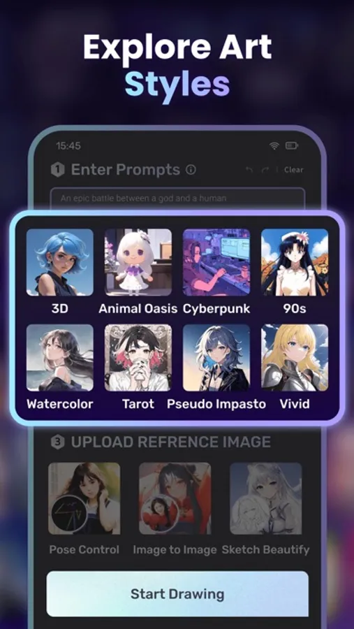 Enter text or upload images to quickly generate exclusive AI artwork or anime avatar. You can receive 【free art cards】 after daily check-in to create artwork with various painting styles. Enter Unidream and start a fantastic journey in another dimension!
