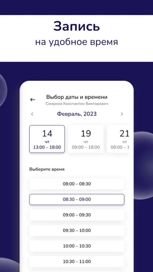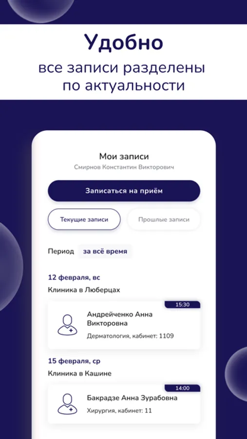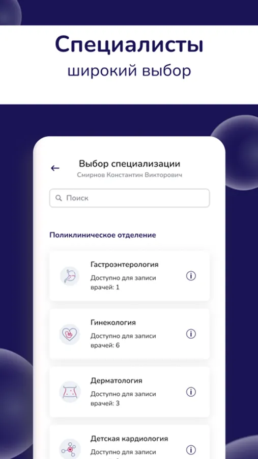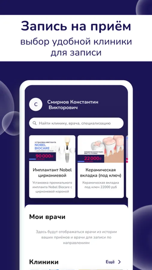 - график работы врачей клиник и возможность самостоятельно выбрать время и дату записи на прием к интересующему врачу;