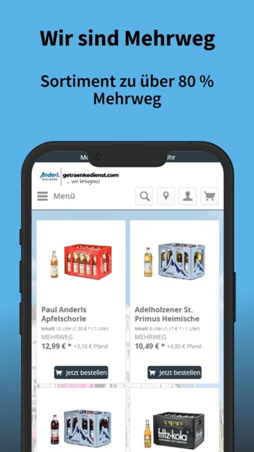 In Zusammenarbeit mit lokalen Getränkehändlern liefern wir die Getränke bequem direkt nach Hause, ins Büro oder in die Werkstatt.
