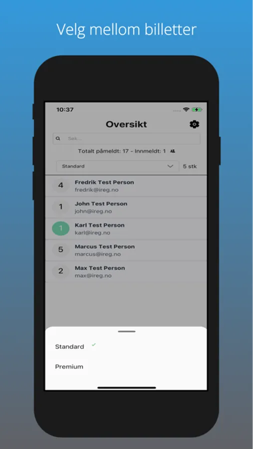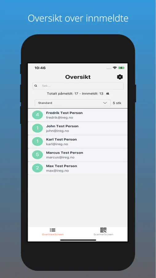 Administrasjon app for iReg admin.