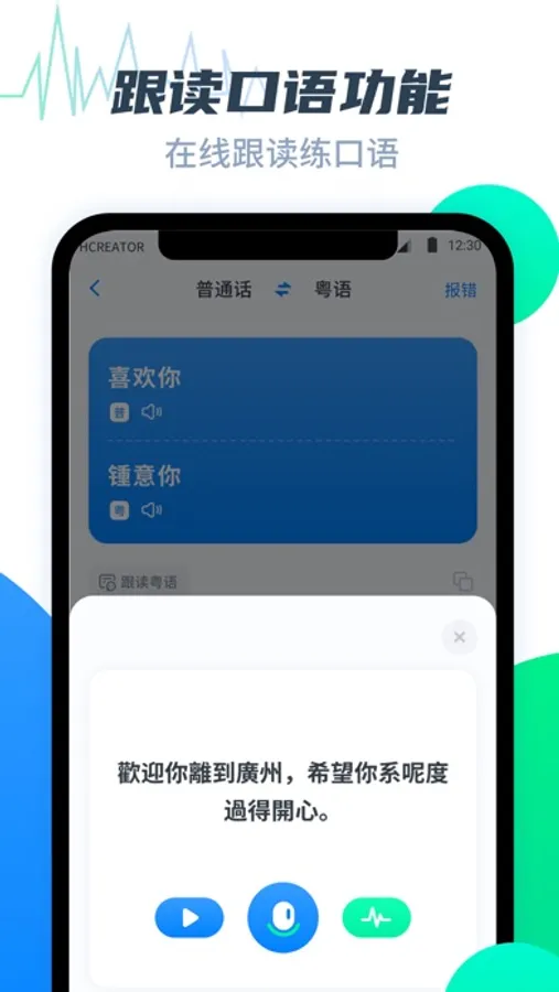 智能语音识别,轻松翻译粤语,整句翻译、真人发音。课程内容覆盖日常会话、商务职场、旅游出行、校园生活等各类场景。