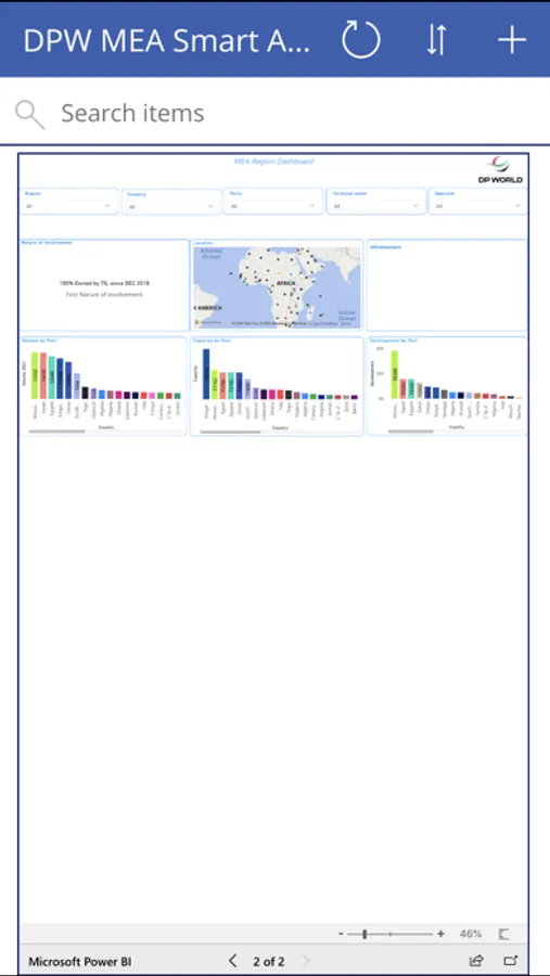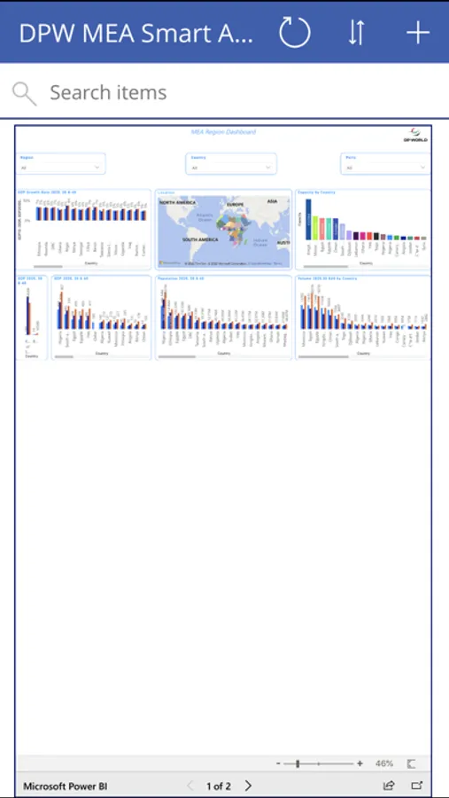 DPW MEA Smart App is developed to showcase visualizations that provides high level insights into Middle East & Africa region's ports, their volumes and growth. The business development managers login to this app using their Office 365 credentials which is enabled with multifactor authentication.