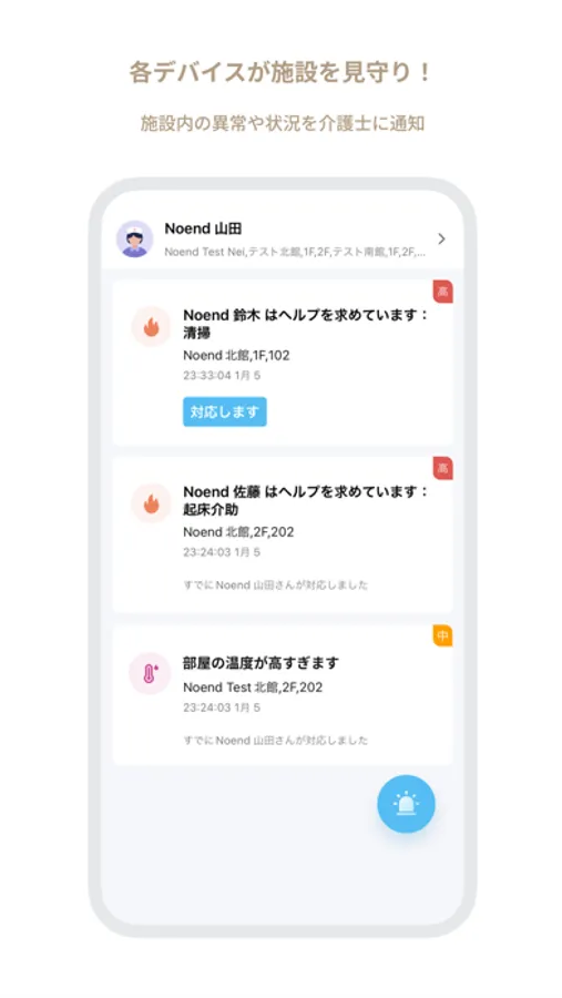 管理者の方が機器接続・配置したり、従業員の方が日々通知を受け取るためのアプリです。