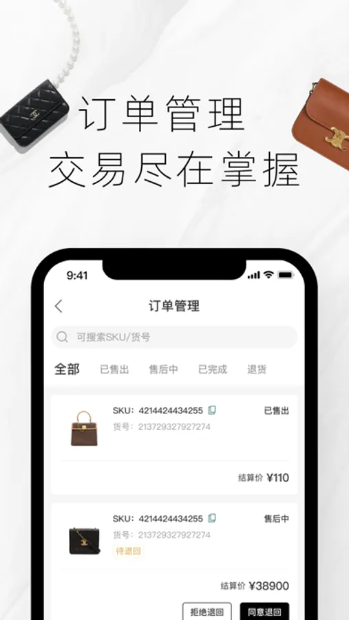 订单管理,便于您随时随地查看订单,向您发送商品售出的通知,帮助您了解到商品的交易趋势。