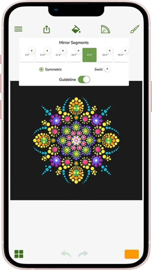 Various mirror segment options helps drawing symmetrical mandalas with little effort
