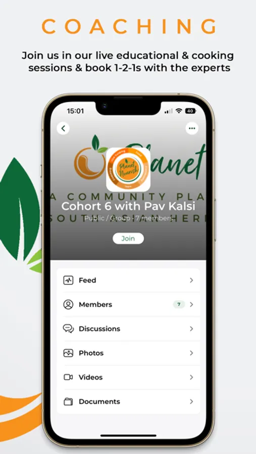 • Join the live weekly coaching sessions with the experts, as well as live cooking sessions with chefs.