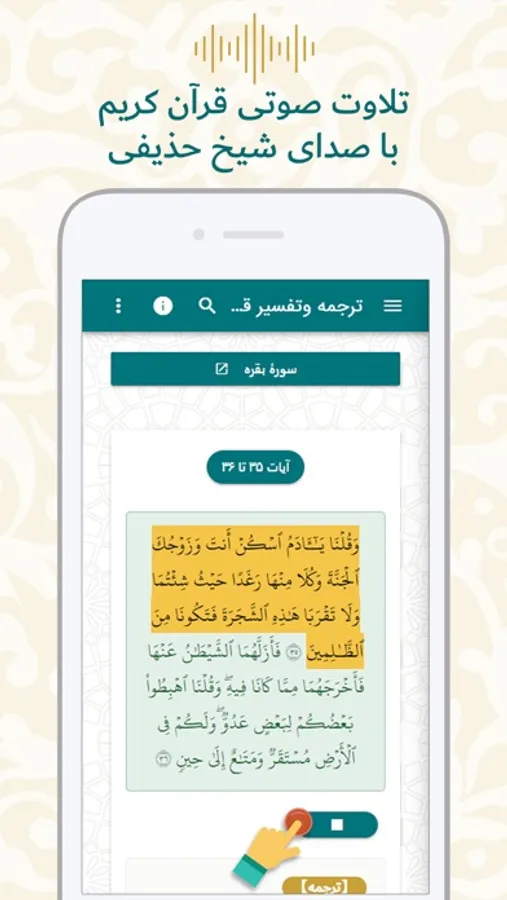 - تلاوت صوتی قرآن کریم با صدای شیخ حذیفی.