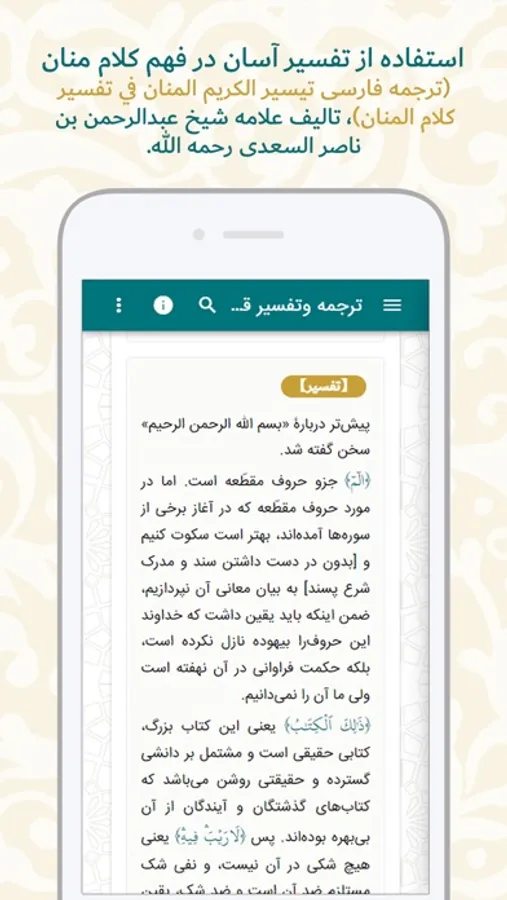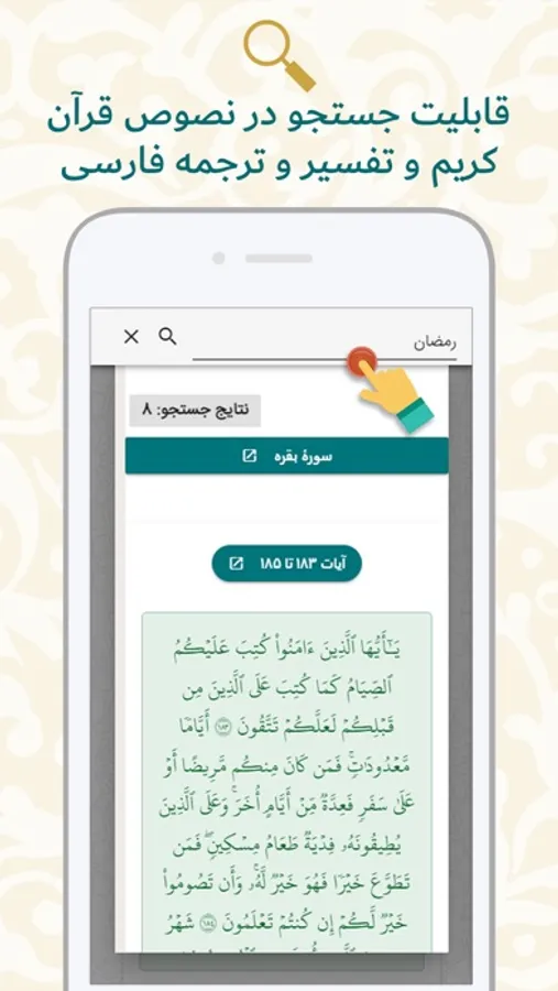 - امکان جستجو در تفسیر و ترجمه فارسی.