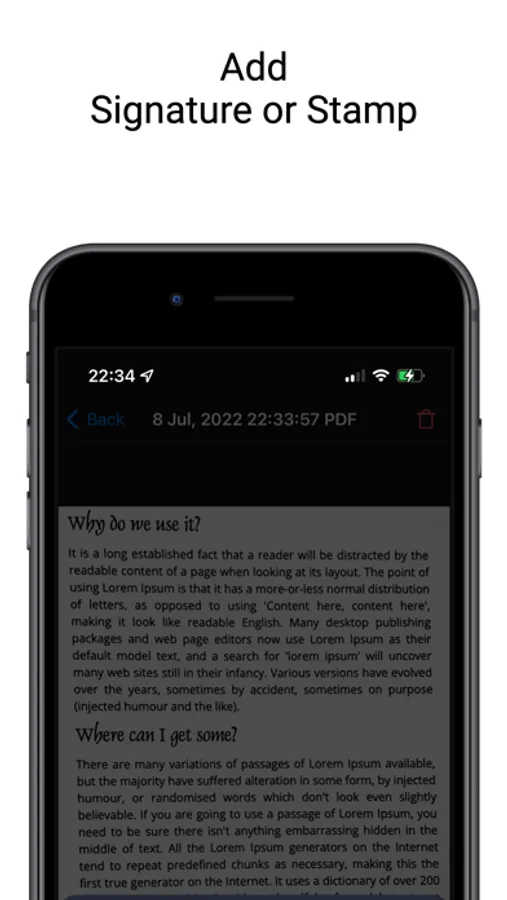 You can easily add a signature, or extract text from the picture using OCR (text recognition algorithm).