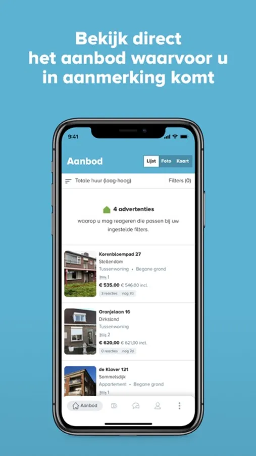 Looking for housing at Goeree-Overflakkee? In this app you will find the range of social housing, garages and storage rooms on Goeree-Overflakkee. Found a suitable home? Respond immediately to the offer and follow the reactions closely to see what your chances are.