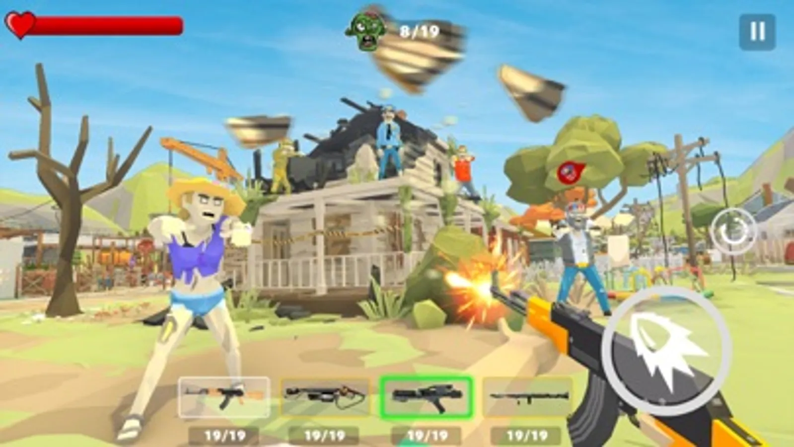 In this adventure, you can make friends or fight against other survivors. Shoot zombies with your sniper gun in fps shooting mode. Death is coming and the battlefield is just for heroes, so build an army!