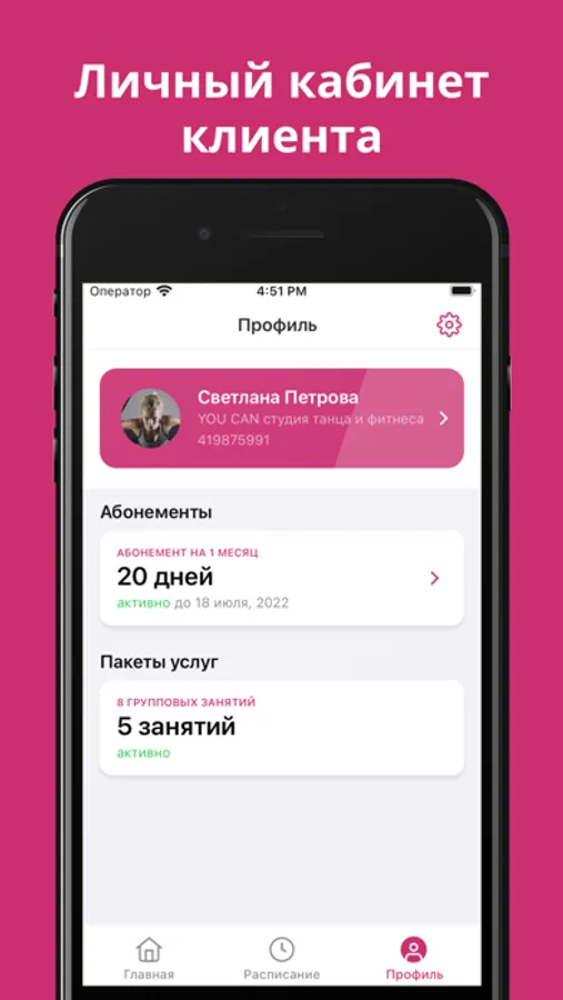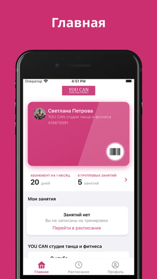 Удобное приложение для клиентов студии танца и фитнеса YOU CAN, здесь вы можете: