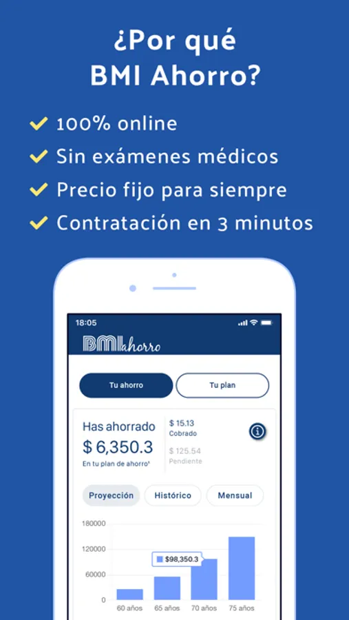 BMI Ahorro es tu seguro de vida más plan de ahorro 100% online desde $25 al mes, con el que puedas proteger a tus seres queridos y ahorrar para tu futuro con un interés garantizado.