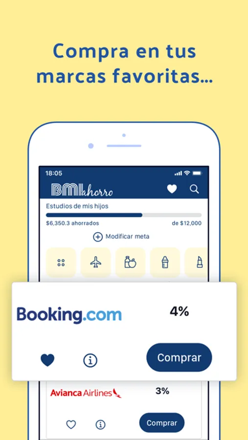 El cashback es otra ventaja que te permite sumar dinero a tu plan de ahorro por cada compra que hagas a través de BMI Ahorro en marcas como Aliexpress, eBay, Avianca, Booking.com y Expedia, entre otras. ¿Por qué es un beneficio? Porque sumas dinero a tu plan de ahorro de forma gratuita y sin esfuerzo.
