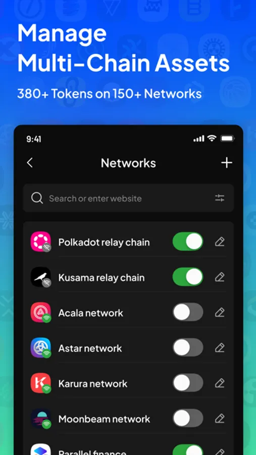 1. Manage multi-chain assets on 150+ networks with 380+ tokens supported.