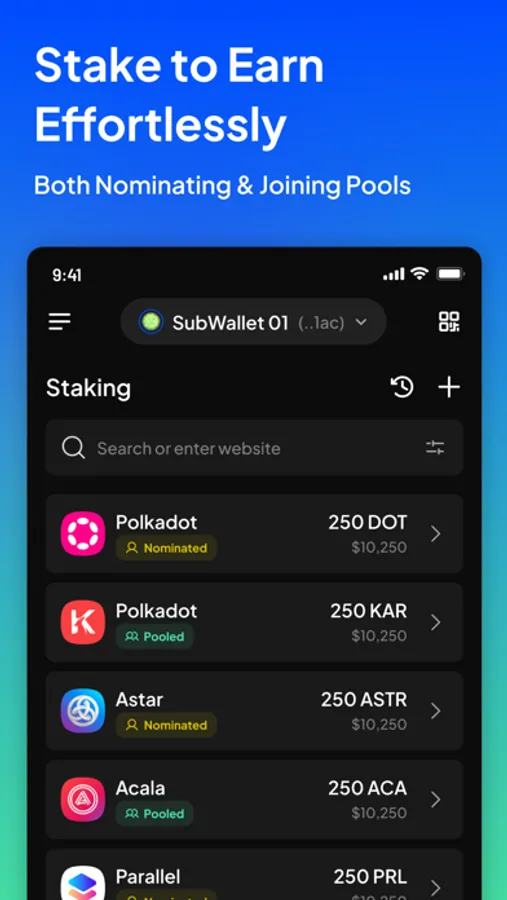 SubWallet is the comprehensive non-custodial wallet solution for Polkadot, Substrate & Ethereum ecosystems.