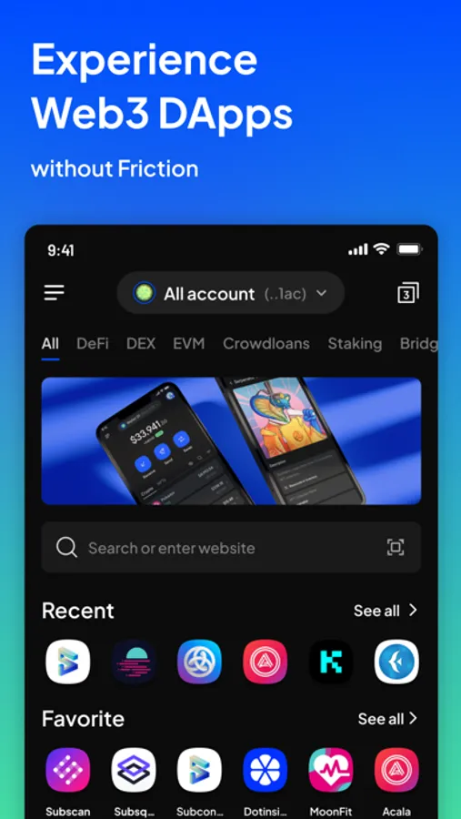 Connecting and using blockchain-based applications is smoother than ever with SubWallet Browser Extension & SubWallet Mobile App. Our web wallet is coming soon!