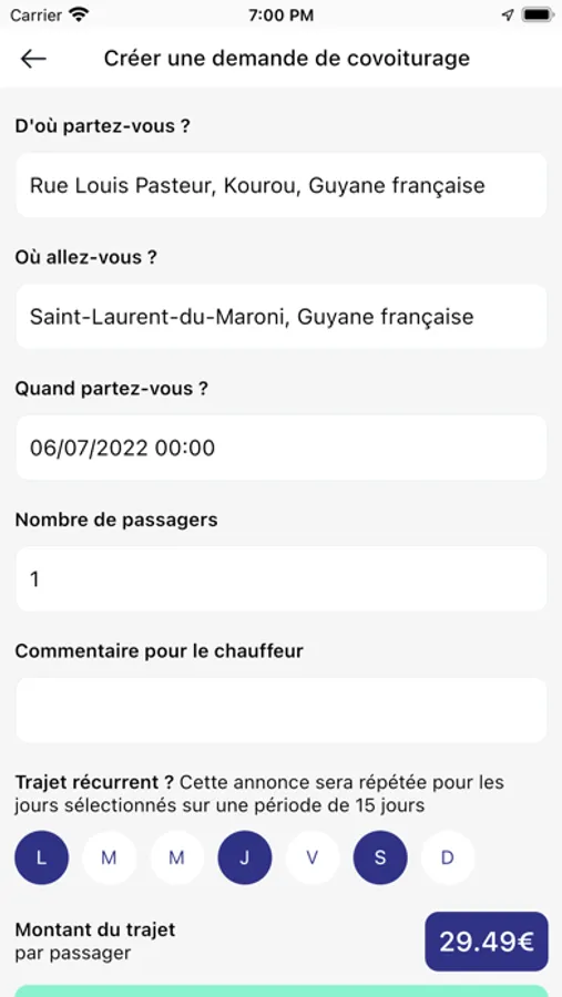 Affichez votre trajet. Notre tarif public s’affiche. Le passager réserve et paie en ligne AN NOU ALE paie au conducteur le prix de la course.