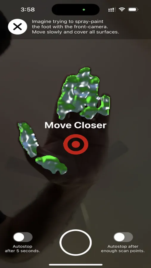The app asks permission to use your camera (front-facing). When you allow the app to use the camera, the permission to use the depth-sensing camera is also provided. The app does not store, collect, or transfer any picture or video data out of your phone. Instead, the app generates and uploads a 3D model of your feet (in form of point clouds) to our servers when you initiate such an upload explicitly.