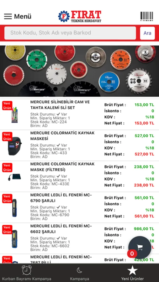 - Cihaz Kamerası ile Barkodu Taratarak Ürün Arama