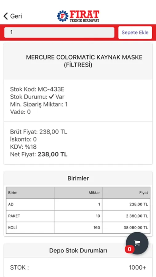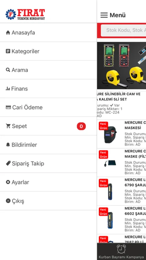 Fırat Teknik B2B Sisteminin Mobil Uygulaması.