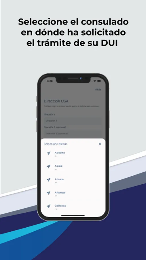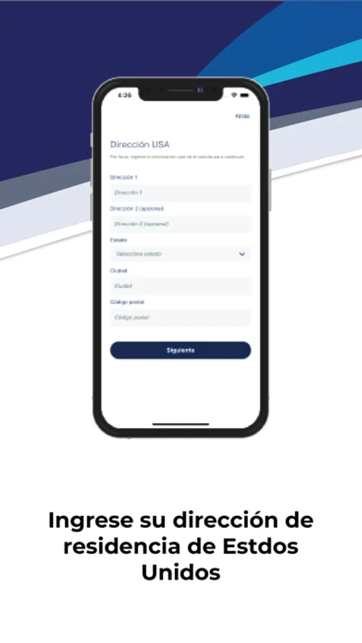 - Dirección del ciudadano en Estados Unidos, que incluye dos líneas de dirección, el Estado en los Estados Unidos de dicha dirección el cual se obtiene de una tabla de los Estados en dicho país, la Ciudad y el código postal (denominado ZIP CODE)