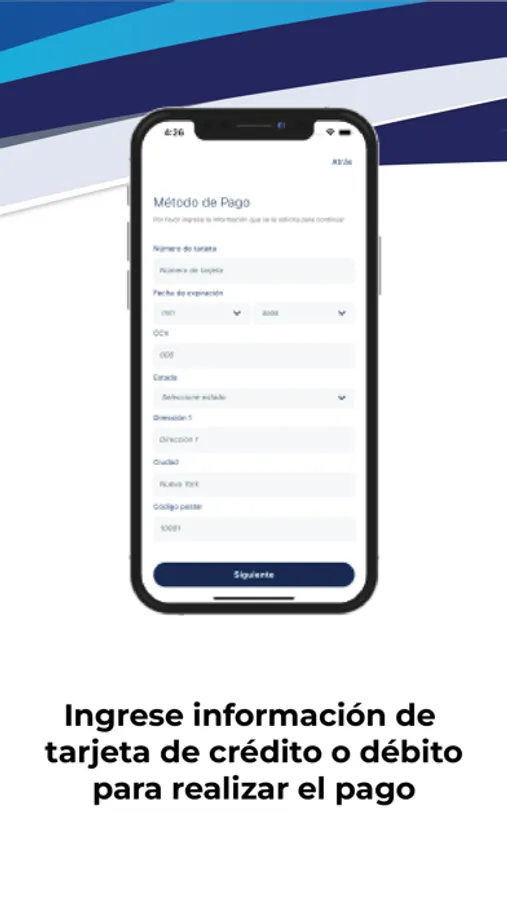 - Dirección de facturación de la tarjeta que incluye dirección, ciudad y código postal