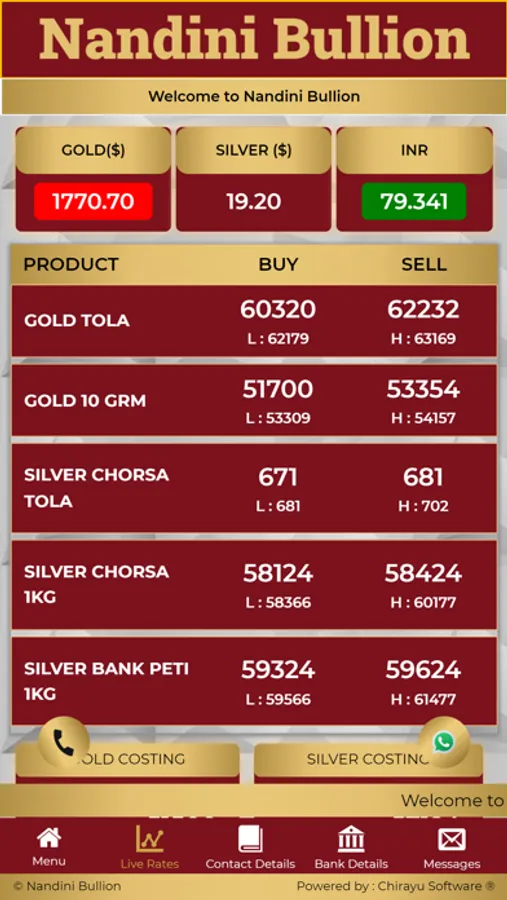 Our app shows the fastest updated LIVE RATES of gold.