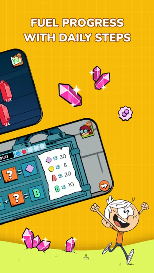Every time your kid makes progress on specific subjects, their new learnings open up doors to their next "Adventure" — a virtual escape room with fun challenges that put their knowledge into practice. They’ll enter an immersive space, based on the hit show Loud House, to create effective and exciting ways for your cool kid to learn beyond the classic classroom curriculum through problem solving challenges, riddles, and more.