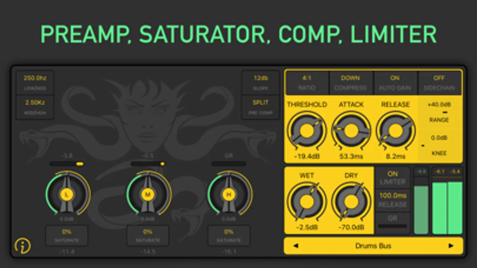 Compressors are probably the most used audio processors and you surely know what it's all about and how it can help to control the dynamic range of your audio signal. So let's get straight to what makes FAC Medusa a new versatile and characterful compressor!