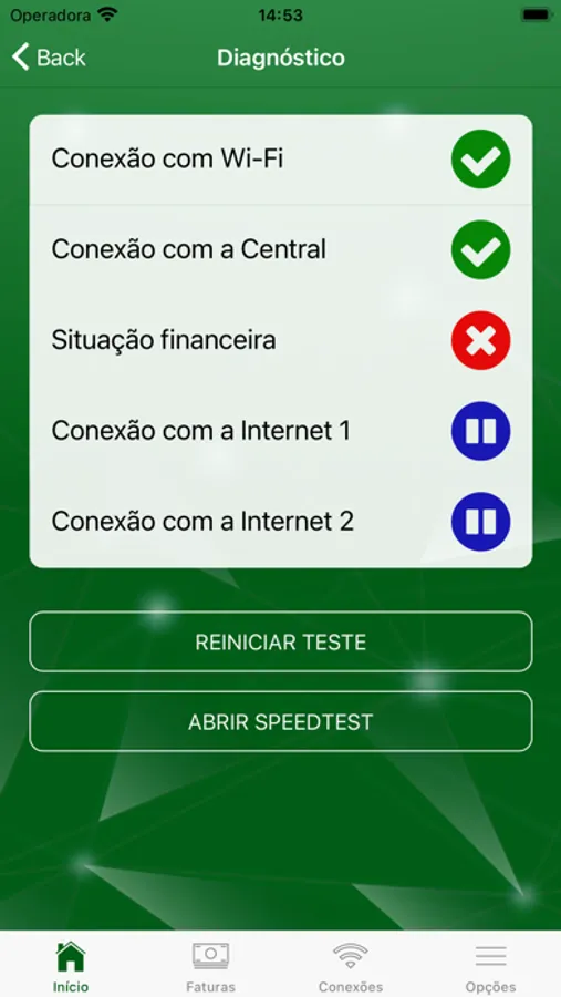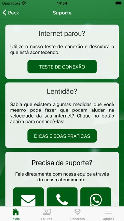 • Realização testes de conexão e velocidade;