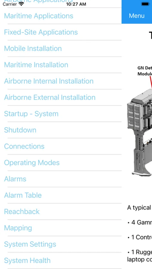An easy-to-use menu structure enables a new operator to get familiar with the equipment and start up the hardware and software in a quick and logical sequence, getting the system mission ready in the shortest time possible. Experienced operators can use the app as a quick reference guide and access only the information they require.