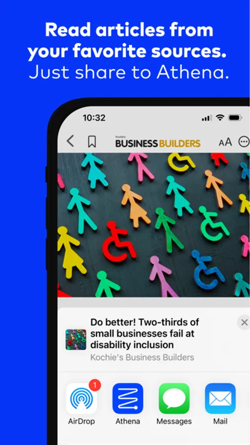 -Share Extension: Share articles and content from other apps or browsers. When you see something that you’d like to read with Athena, simply tap the share icon and select Athena from the share menu.