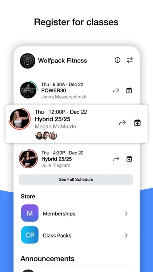 Wolfpack Fitness offers in-person and virtual classes. Strength and bootcamp style classes are offered over Zoom. Available in the studio are cycling, bootcamp, strength and combination classes. Our main focus is bringing overall wellness to our community. Wolfpack pays close attention to detail, and keeps the class (and you) moving all while having fun. Download the app to access our full schedule and book your next class!