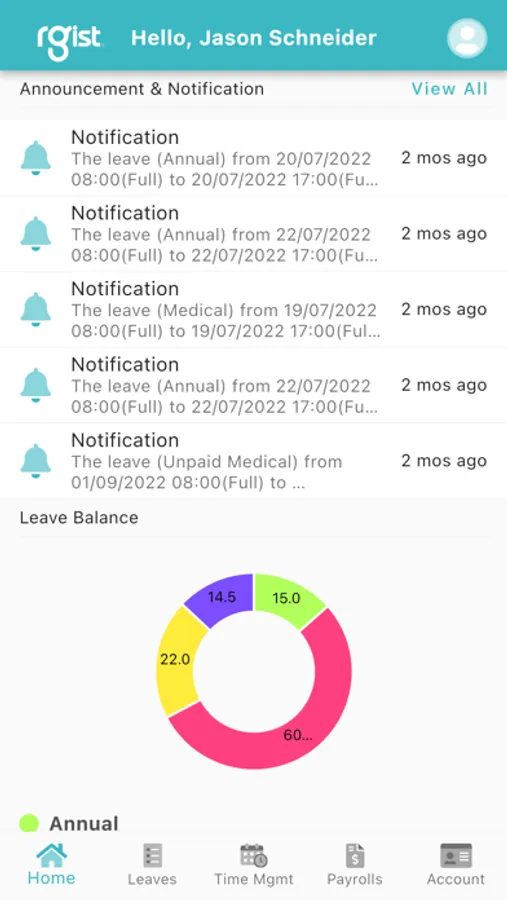 This HR apps with integrated features to HR and company information such as: Time Management System, Payslip, Leave information, Notification and Announcement