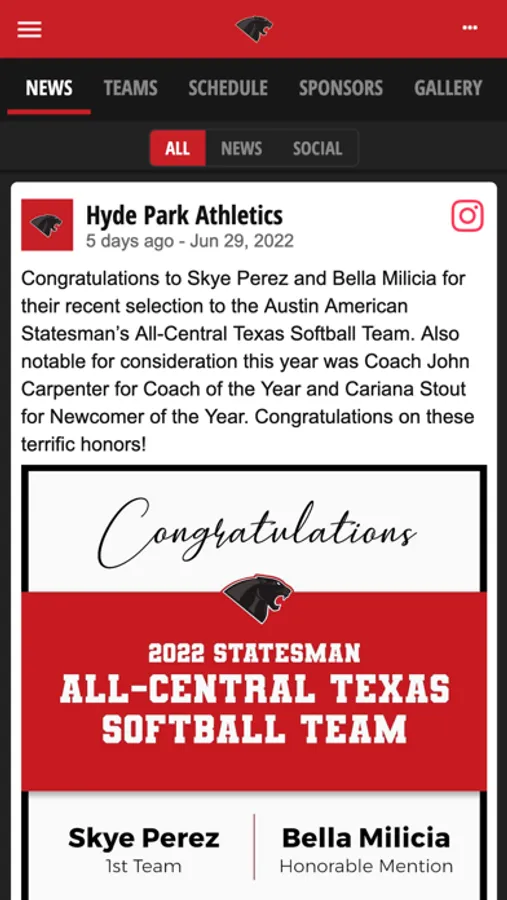 The HP Panthers Athletics app is provided and operated by Hyde Park Schools and features LIVE scoring, schedules, news updates, and rosters for all participating HP Panthers teams and organizations.