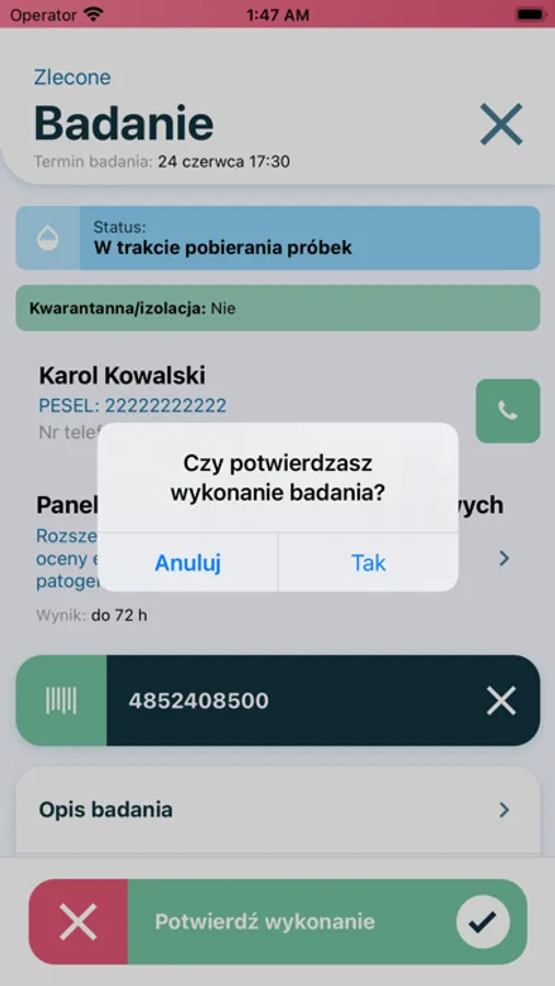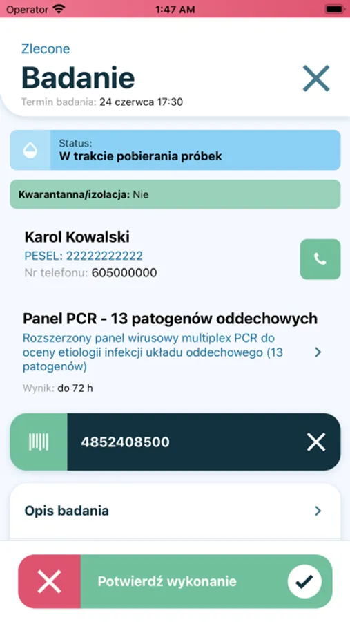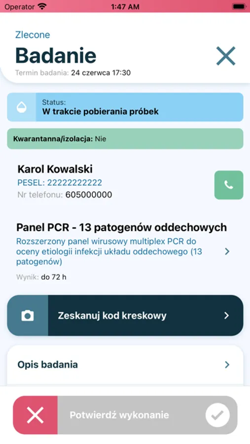 - Jeżeli wiesz, że dane badanie powinno być wykonane w innych godzinach lub możesz przyjechać na pobranie w innym terminie, możesz zaproponować inny termin pacjentowi. Jeżeli pacjent nie wyrazi zgody na nowy termin, zlecenie wraca do ogólnej puli.