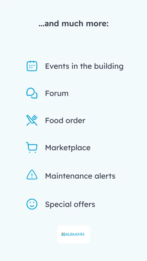 This app is created with cooperation with the building’s developer – Baumann Group and is updated regularly. If you have any suggestions for improvement, if you find a bug, or just want to say hello, please write to us at support@sharryapp.com.