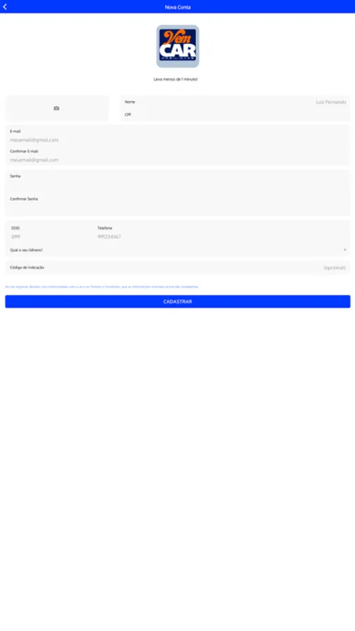 VemCar é um aplicativo para solicitar viagens rápidas, confortáveis e seguras em apenas alguns minutos. Poucos toques no aplicativo para solicitar uma viagem.